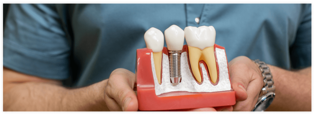 A dental implant is a surgical component that interfaces with the bone of the jaw to support a dental prosthesis such as a crown, bridge, or denture. It is a common treatment option for replacing missing teeth.